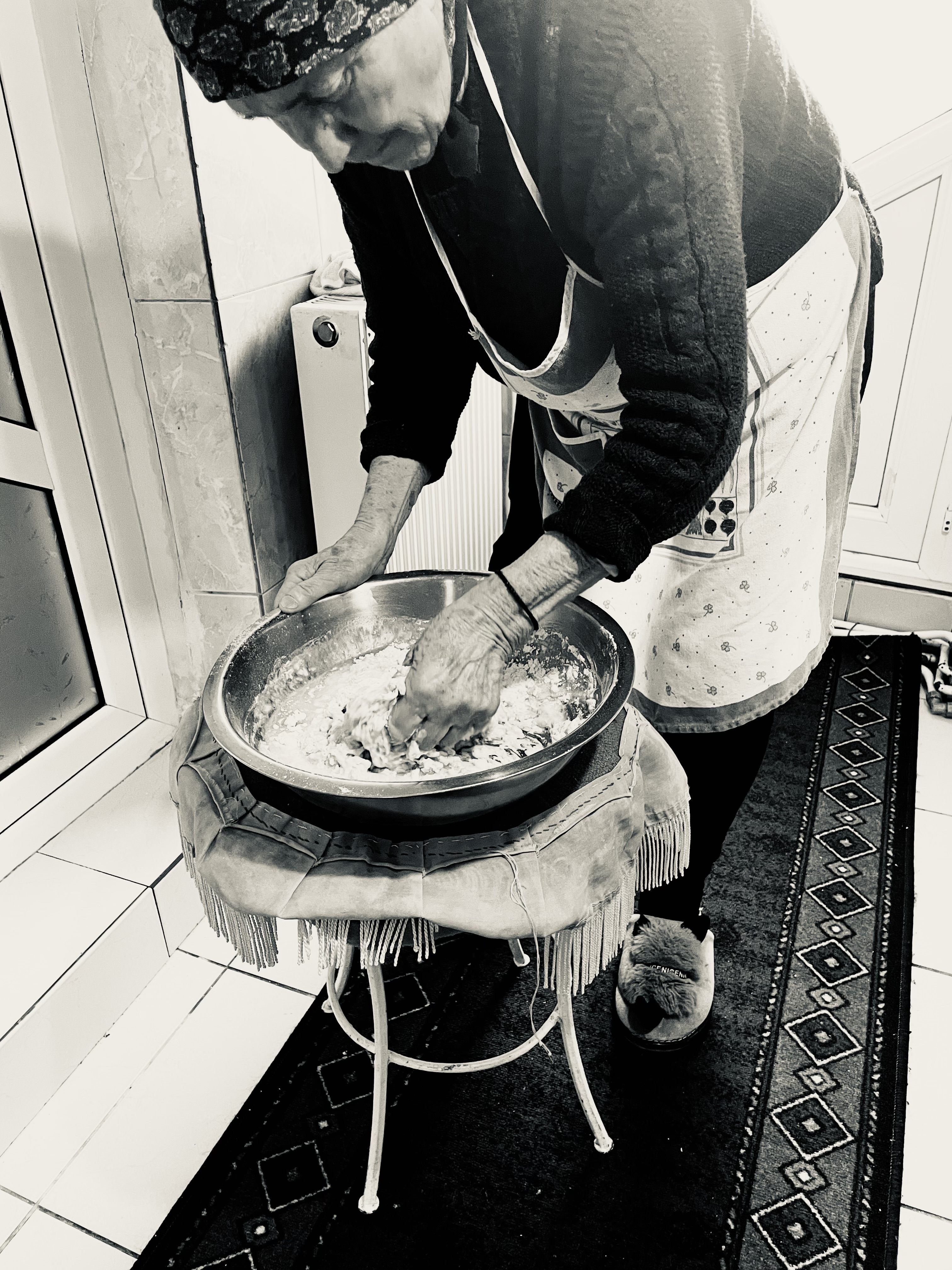 I spend my days with so much slowness, I feel as if the time is almost stopped. I watch my grandmother cook, how she kneads the dough with her small hands, I watch her twist and turn it, compressing her loving into the food she makes, blessing it each time she presses her knuckles. Every now and then she murmurs to herself gratitude for the flour, the oil, thanking the seed which sprouted into this grain that feeds us. I watch her with shivers on my skin: this simplicity of her heart that harbours such a deep love for god and reverence for the every day life.