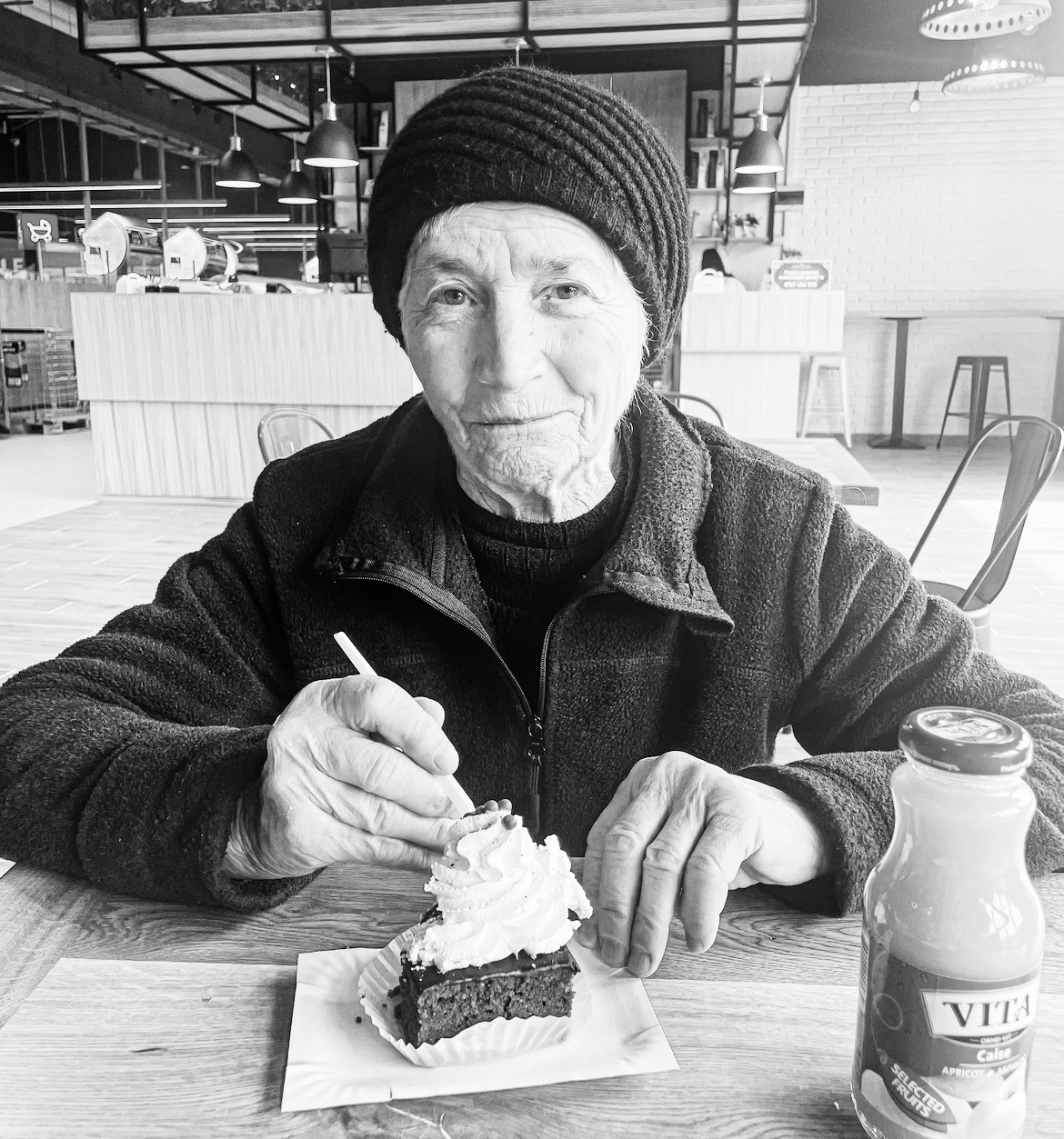 She tells me: I don’t want my son to go before me. Every day I pray to god that he takes me instead of him. He leaves us both.